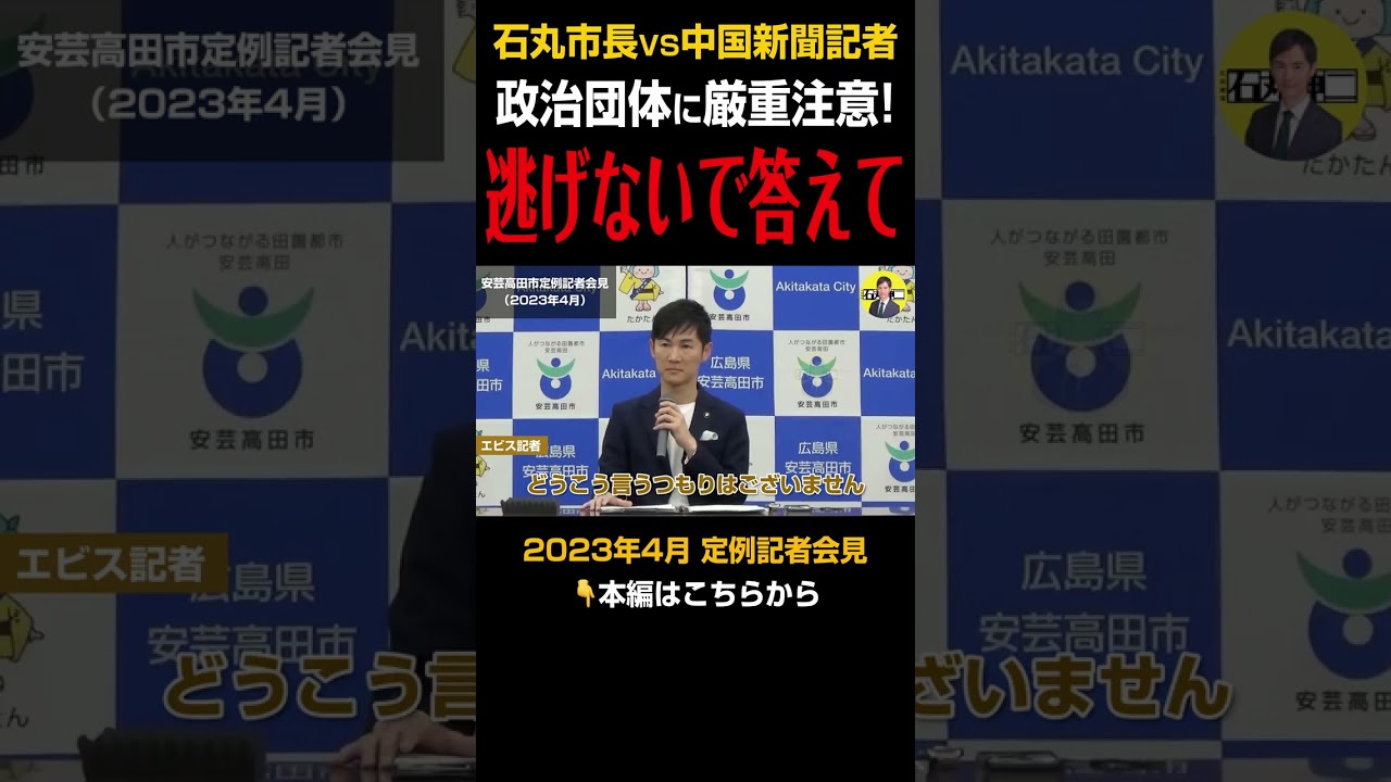 【石丸市長vs中国新聞編⑪】石丸市長に迷惑行為を行う市政刷新ネットワークを厳重注意!加担しているエビス記者に市長が問い詰める!!【安芸高田市/切り取り】 #ショート #shorts