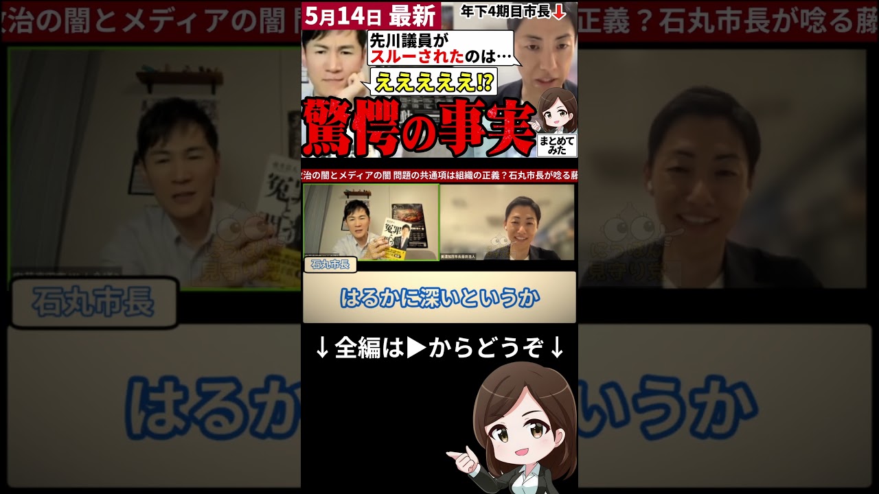 2024年5月13日、石丸市長と美濃加茂市の藤井市長がミートアップオンラインで対談しました。この中で、双方の議会で問題となっている政治家の不祥事、問題行動やメディアについて意見交換がされました。こちらのチャンネルではナビゲーターの【東雲マコ】が政治のニュースや動画、ネットの反応などを引用しながら、事実を調査し問題点を論評していくエンタメ系ニュースメディアです!