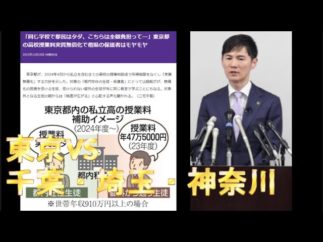 HOME > 石丸市長関連動画 > 石丸市長関連動画 5/17プレライブ①石丸市長都知事選出馬表明について 2024年5月18日 東京都が高校授業料の実質無償化など独自の子ども支援策を打ち出し、周辺の埼玉、千葉、神奈川3県が「地域間格差が拡大している」と懸念を示し国に対応を求めた問題で、小池百合子都知事は10日の定例記者会見で「内容に明らかな事実誤認がある」などと3県の主張に異議を唱えた。 Post Share Pocket Hatena LINE URLコピー -石丸市長関連動画