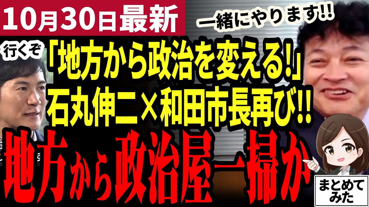 2024年10月29日、石丸氏と想いを共にする彦根市の和田市長が自身のチャンネルで、石丸氏の今後についてヒントを出しました。また衆院選の結果についても大変興味深い示唆をしていました。こちらのチャンネルではナビゲーターの【東雲マコ】が政治のニュースや動画、ネットの反応などを引用しながら、事実を調査し是々非々で論評していくエンタメ系ニュースメディアです!