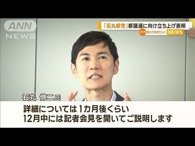 元安芸高田市長の石丸伸二氏は12日夜、自身のYouTubeチャンネルで来年夏の都議選に向けて、地域政党を結成する考えを表明しました。