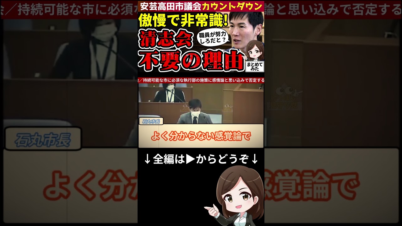HOME > 石丸市長関連動画 > 石丸市長関連動画 【転機】石丸市長7月の市長選挙不出馬を表明 安芸高田市 市民には大きな損失となるが 日本にとっては大きな収穫! 規制の政治によらない 革新的な政策に期待 日本の未来を憂う人々からは歓喜を持って受け入れ 2025年3月27日 Post Share Pocket Hatena LINE URLコピー -石丸市長関連動画