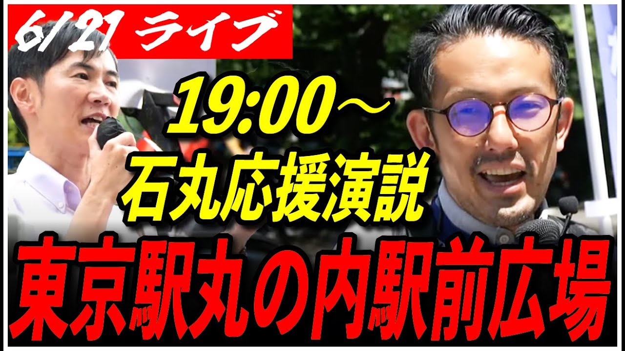 【石丸伸二 街頭演説 千代田区】6/21 再生の道 やなぎさわ誉之 街宣 19:00~東京駅 丸の内駅前広場 高画質・高音質・高民度【ライブ配信/応援演説】