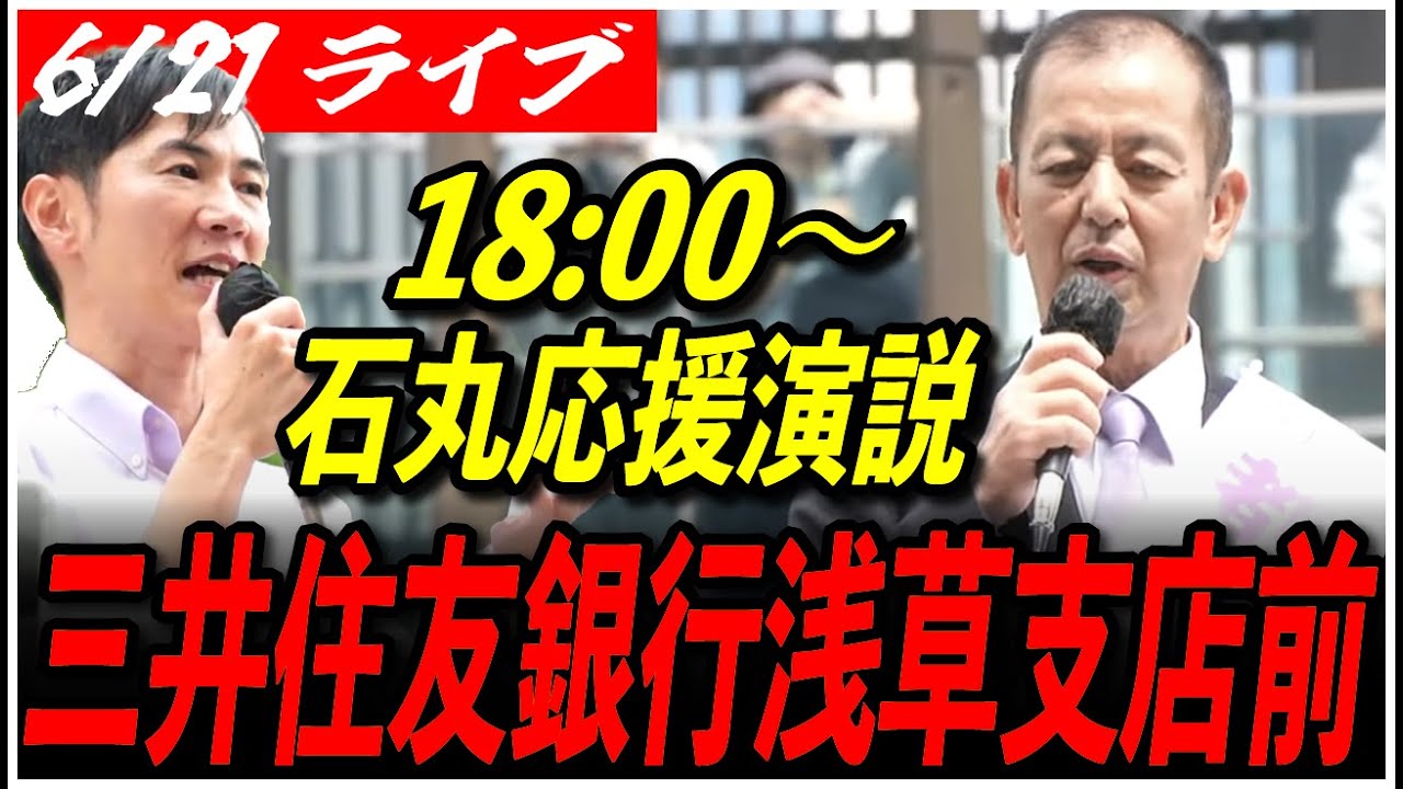 【石丸伸二 街頭演説 台東区】6/21 再生の道 岩﨑あきら 街宣 18:00~三井住友銀行浅草支店前 高画質・高音質・高民度【ライブ配信/応援演説】