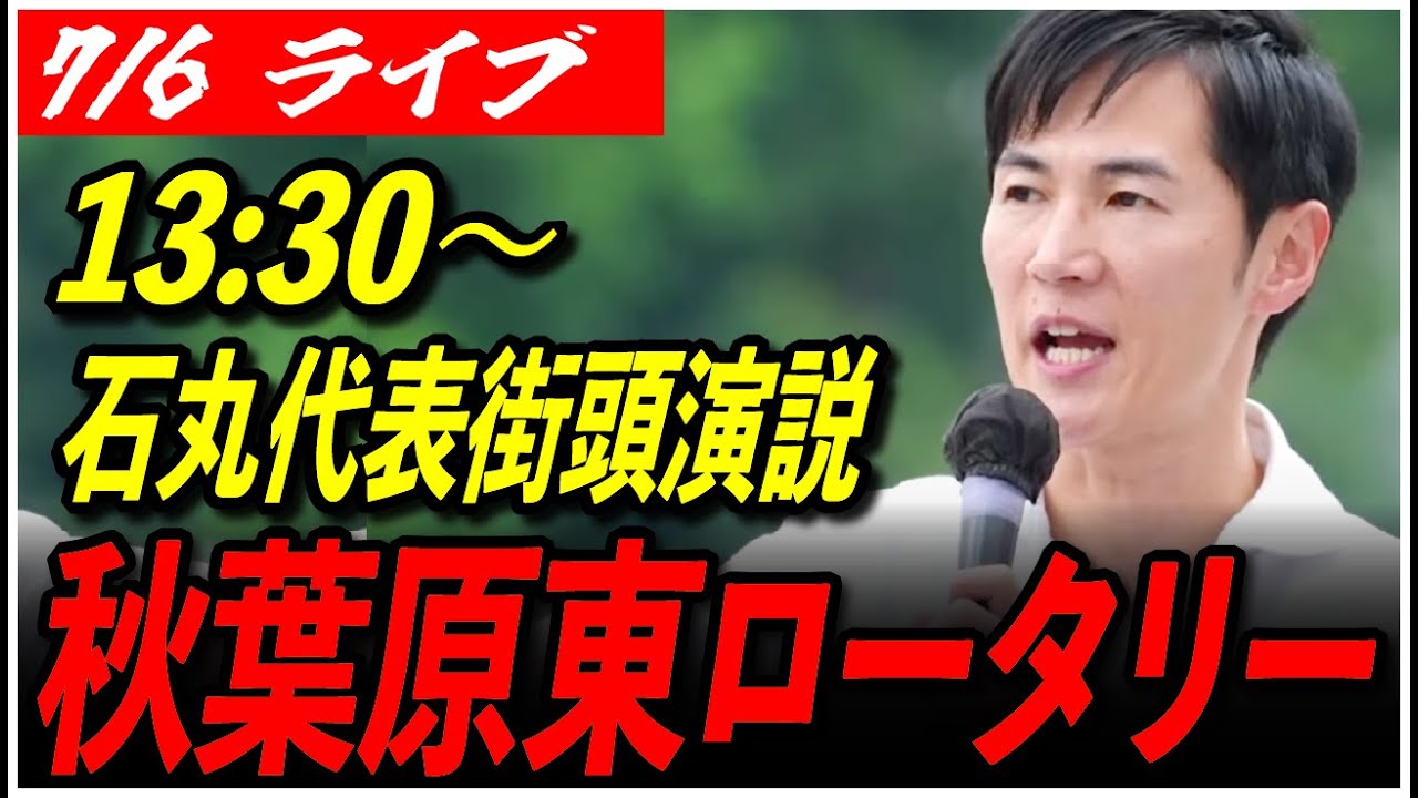 【石丸伸二代表 再生の道 衝頭演説】7/6 秋葉原駅 東側ロータリー 参院選 街宣 13:30〜 高画質・高音質・高民度【ライブ配信/応援演説】