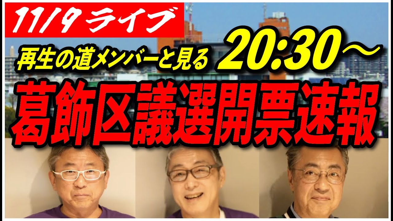 【開票速報】11/9 葛飾区議会議員選挙 with再生の道メンバー 【岩見なつよ/高画質・高音質・高民度/ライブ配信】