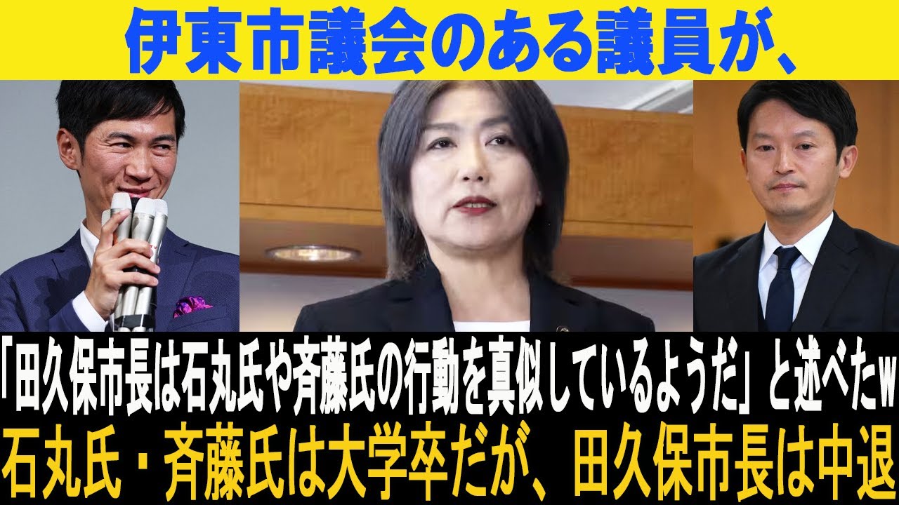 😱伊東市議会のある議員が、「田久保市長は石丸氏や斉藤氏の行動を真似しているようだ」と述べたw…石丸氏・斉藤氏は大学卒だが、田久保市長は中退 #田久保市長 #伊東市長 #田久保眞紀